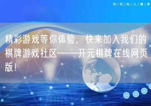 随着互联网的快速发展,越来越多的人选择在网上享受娱乐生活。作为一个充满活力和热情的棋牌游戏社区,我们诚挚邀请您加入我们的大家庭——开元棋牌在线网页版!在这里,您可以体验到最精彩的游戏,无论是棋牌游戏还是其他娱乐项目,我们都为您精心准备。